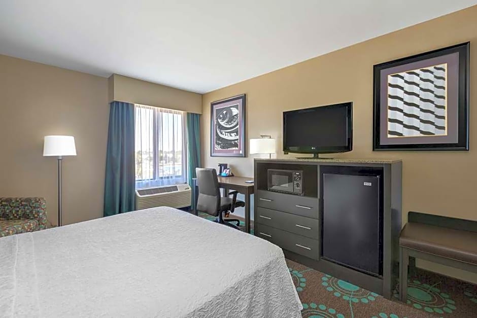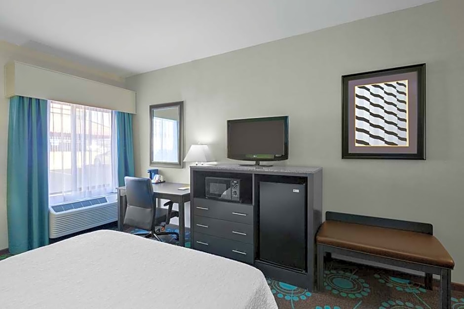 32-inch HDTV, work desk, microwave, refrigerator, easy chair, free WiFi access Enjoy extra space in this deluxe non-smoking guest room featuring our clean and fresh Hampton bed®, sofa that can be made into a full-sized bed, and a comfortable easy chair with ottoman. Stay entertained with movies on the 32-inch HDTV or catch up with work at the desk with free WiFi access. Enjoy the convenience of having a coffeemaker, microwave and refrigerator in your room. The bathroom features fluffy towels, a WaterPik showerhead and a curved shower rod, which offers added space and light when showering.